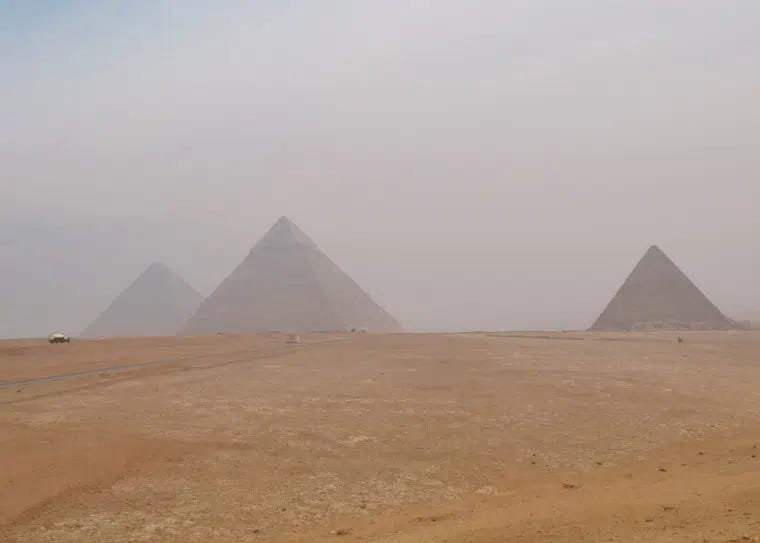 Mas foi só quando eu estava ali, frente a frente, com a pirâmide de Quéops que pensei: “É, depois de ver assim de perto, até consigo acreditar nas teorias da conspiração”.