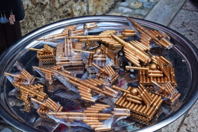 Hoje, no chão da cidade, as marcas de de bombas, pintadas de vermelho, são conhecidas como “Rosas de Sarajevo”.