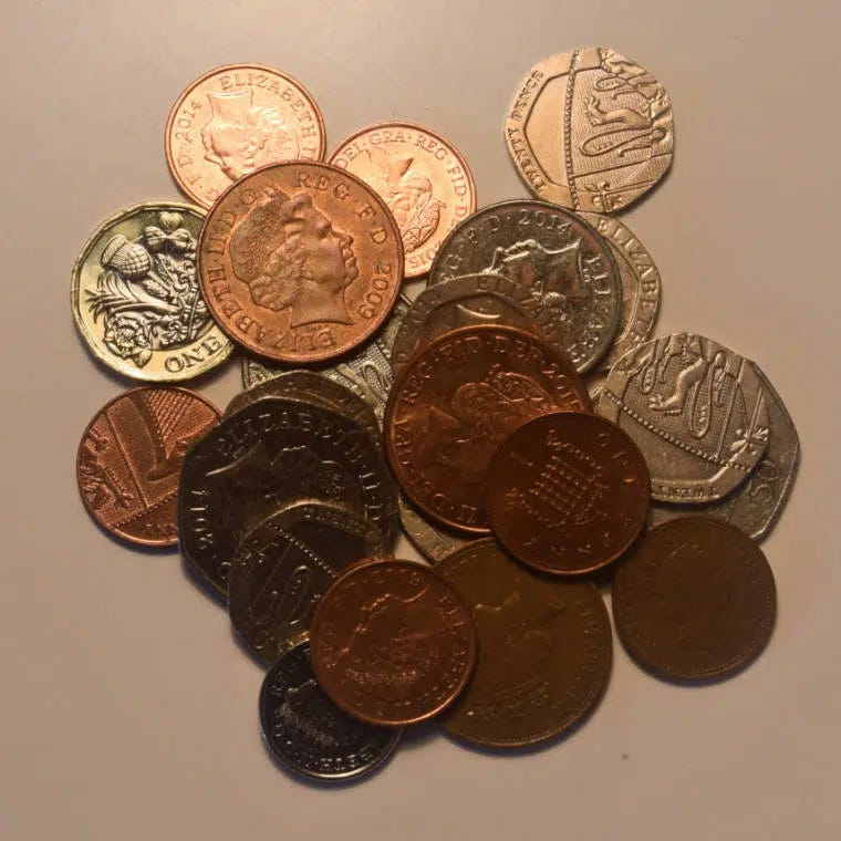 Foi por isso que, depois de tantos momentos constrangedores, eu fui pesquisar sobre por que diabos a Dona Elizabeth II, cuja face ainda estampa a maioria os tostões de sua terra, tem essa lógica completamente insana para lidar com o dinheiro de metal.